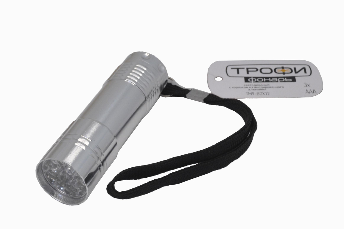 Фонарь Трофи TM9 для освещения затемненного пространства. Изделие можно переносить в кармане, брать в дорогу или поход. Корпус изготовлен из прочного материала. Источник света - это 9 белых светодиодов.Элементы питания AAA/R03. Количество и напряжение элементов питания 3х1.5В. Степень защиты IP20. Количество светодиодов/ламп, шт 9.