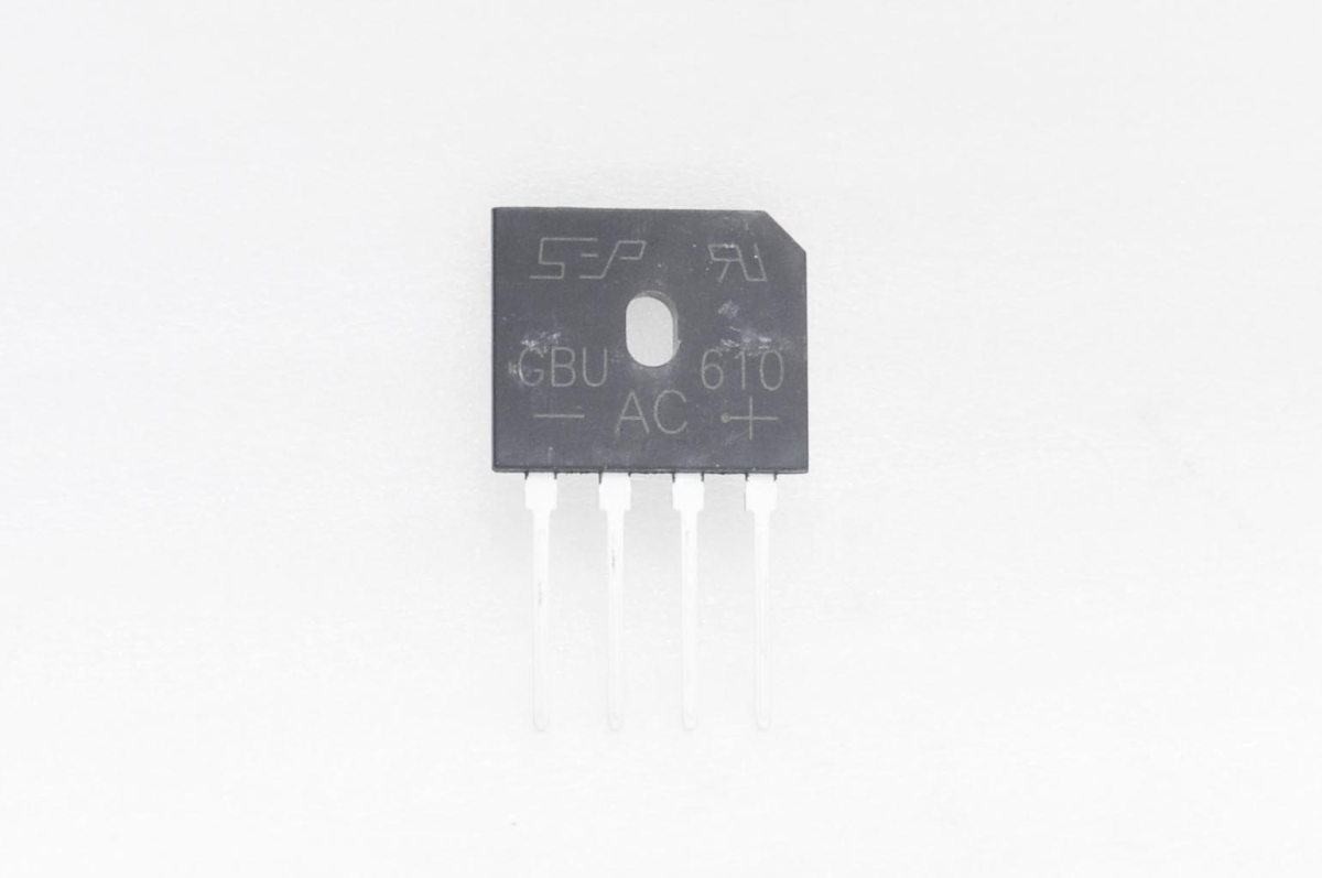 GBU610 - однофазный диодный мост для сквозного монтажа. Максимальное обратное напряжение 1000 В, максимальный прямой ток 6 А, прямое падение напряжения 1,1 В.