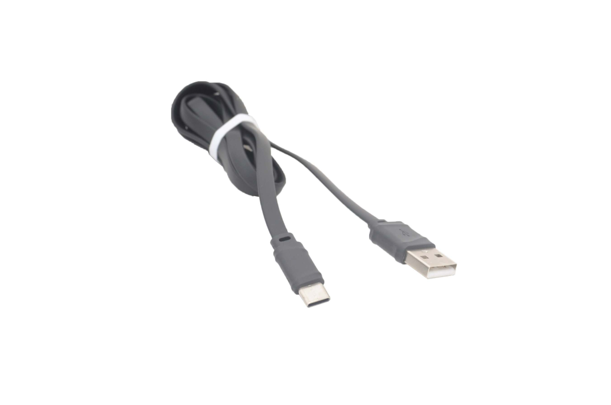 Шнур USB type A - USB type C, длина 1 метр, ПВХ оплетка, плоский шнур, черный
