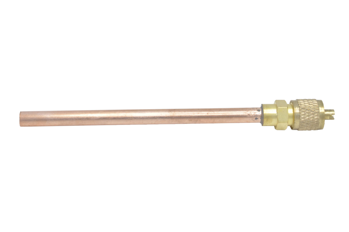 Сервисный штуцер с медной трубкой BC-AV-04 для присоединения к системе циркуляции хладагента диагностического или сервисного оборудования имеющего накидную гайку с резьбой 1/4" SAE. Длина, мм 100. Диаметр, дюйм 1/4". Толщина стенки, мм 0,6.