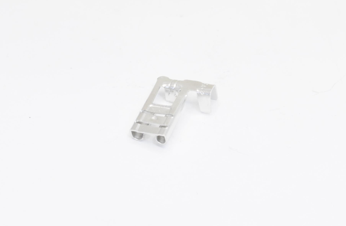 Клемма плоская с фиксатором "гнездо" правый угол, серебро до 6.3В