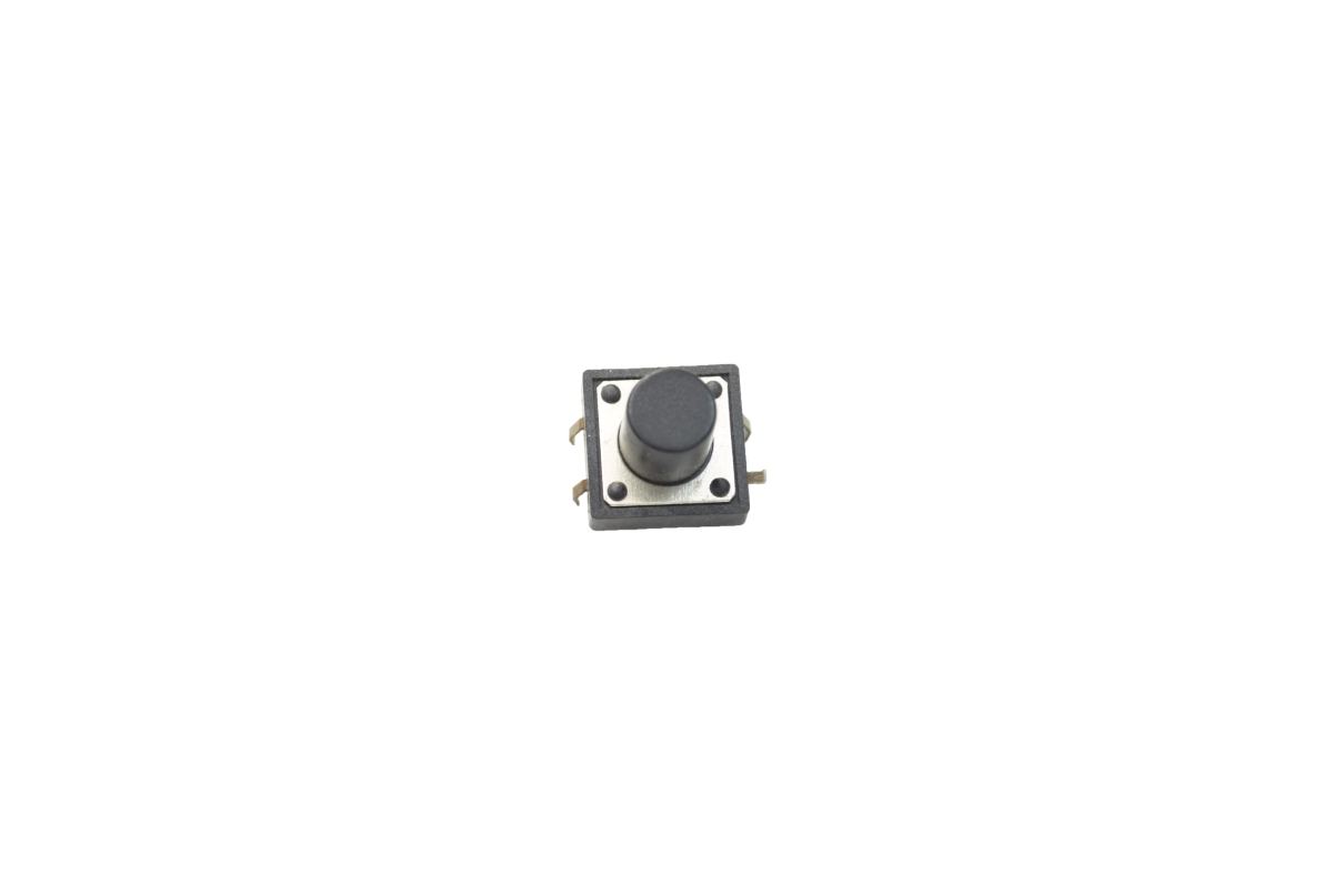 Микрокнопка тактовая, номинальный ток 50 мА,номинальное напряжение 12 В, сопротивление контактов 100 мОм, рабочий ход 0,25 мм ± 0,1 мм, габариты: 12×12×10 мм