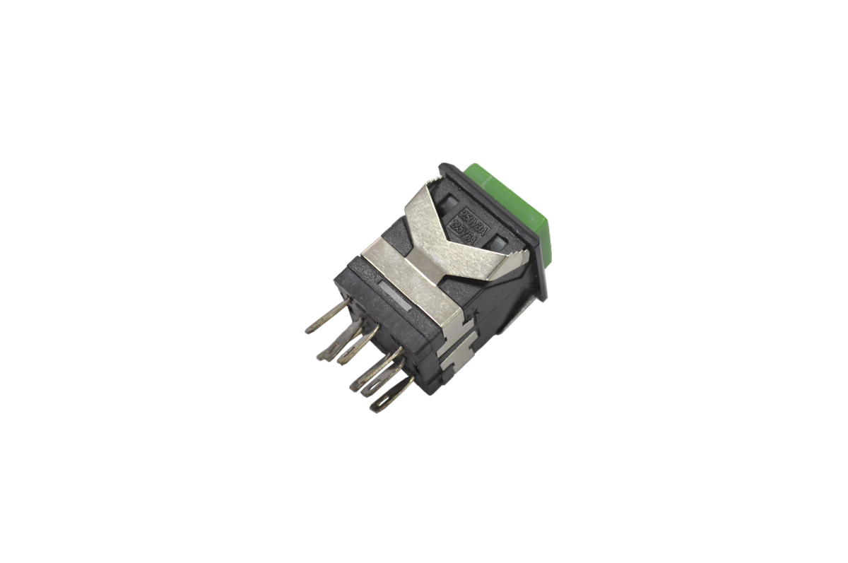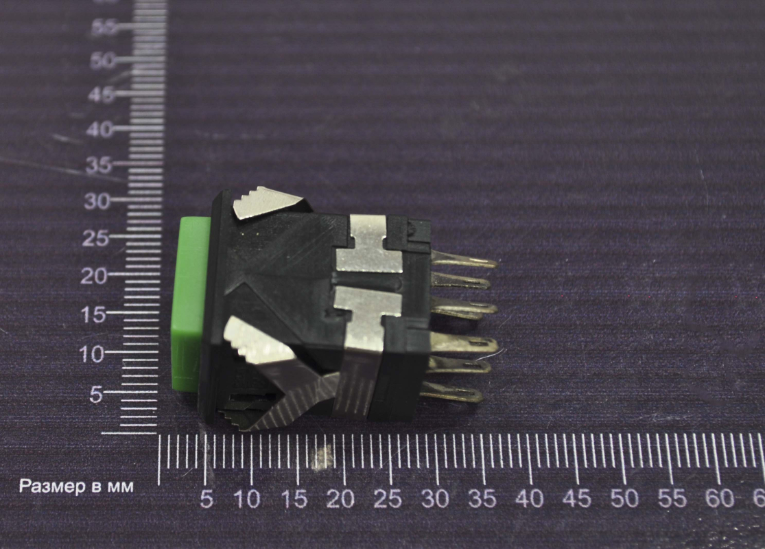 Кнопка KD2-22BER, зеленая, без фиксации. Характеристики: предельное напряжение 1000 В переменного тока в минуту, сопротивление контактов, не более 20 мОм, сопротивление изоляции, не менее 100 МОм при 500 В постоянного тока, диапазон рабочих температур: -10°С +85°С, количество коммутационных циклов: 10 000 циклов, нагрузка контактов, 3А, переменный ток: 250 B, алгоритм работы: ON-ON с фиксацией, подсветка: светодиод