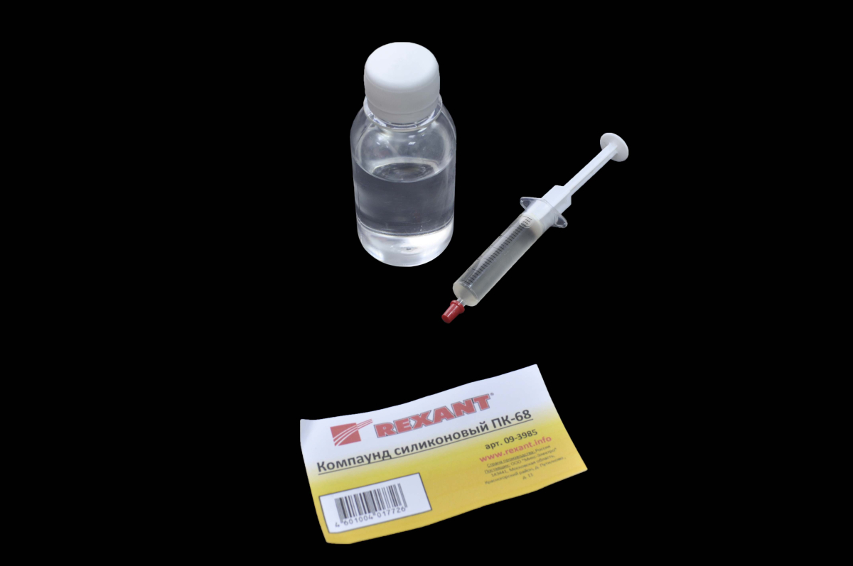 Компаунд силиконовый, прозрачный ПК-68 (двухкомпонентный) 100гр для герметизации электро- и радиоприборов, работающих в среде воздуха в условиях вибрации, повышенной влажности в температурном интервале от -60℃ до +250℃. Внешний вид: пастообразный материал, обладающий способностью при смешивании с катализатором вулканизоваться при температуре окружающей среды, переходя в резиноподобное состояние. Основу и катализатор смешивают в чистой емкости в соотношении частей -100:6. Силиконовый двухкомпонентный компаунд получен на основе низкомолекулярного диметилсилоксанового каучука. Основные характеристики: - отверждение герметика: 24 часа (при комнатной температуре);- вес продукта: 100гр;