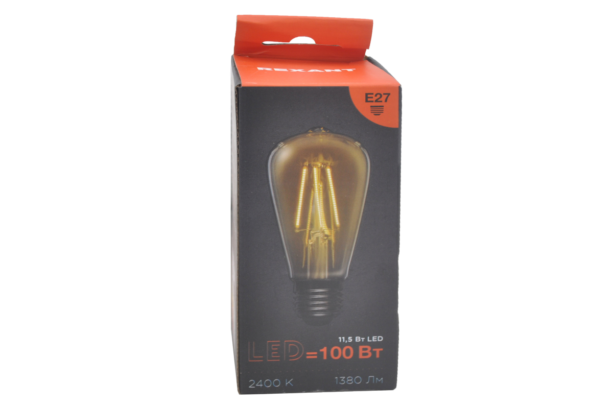 Лампа светодиодная интерьерная Rexant. Тип цоколя E27. Мощность лампы, W 11,5. Напряжение, V 230V. Цветовая температура, K 2700. Индекс цветопередачи: >90. Цвет и материал золотистое стекло