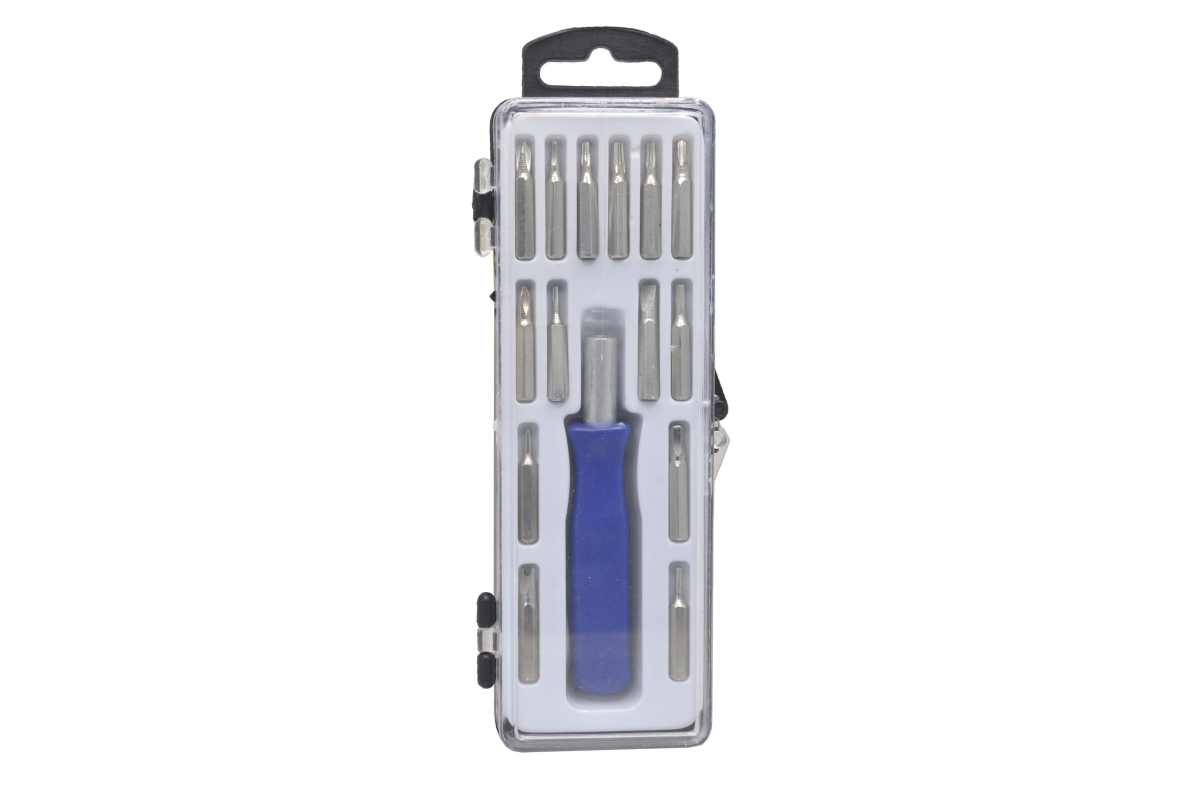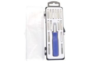 Набор отвертка с битами. 16 различных насадок. Быстрая и удобная смена насадок. Пластиковая ручка длиной 8см. Удобный футляр для хранения набора