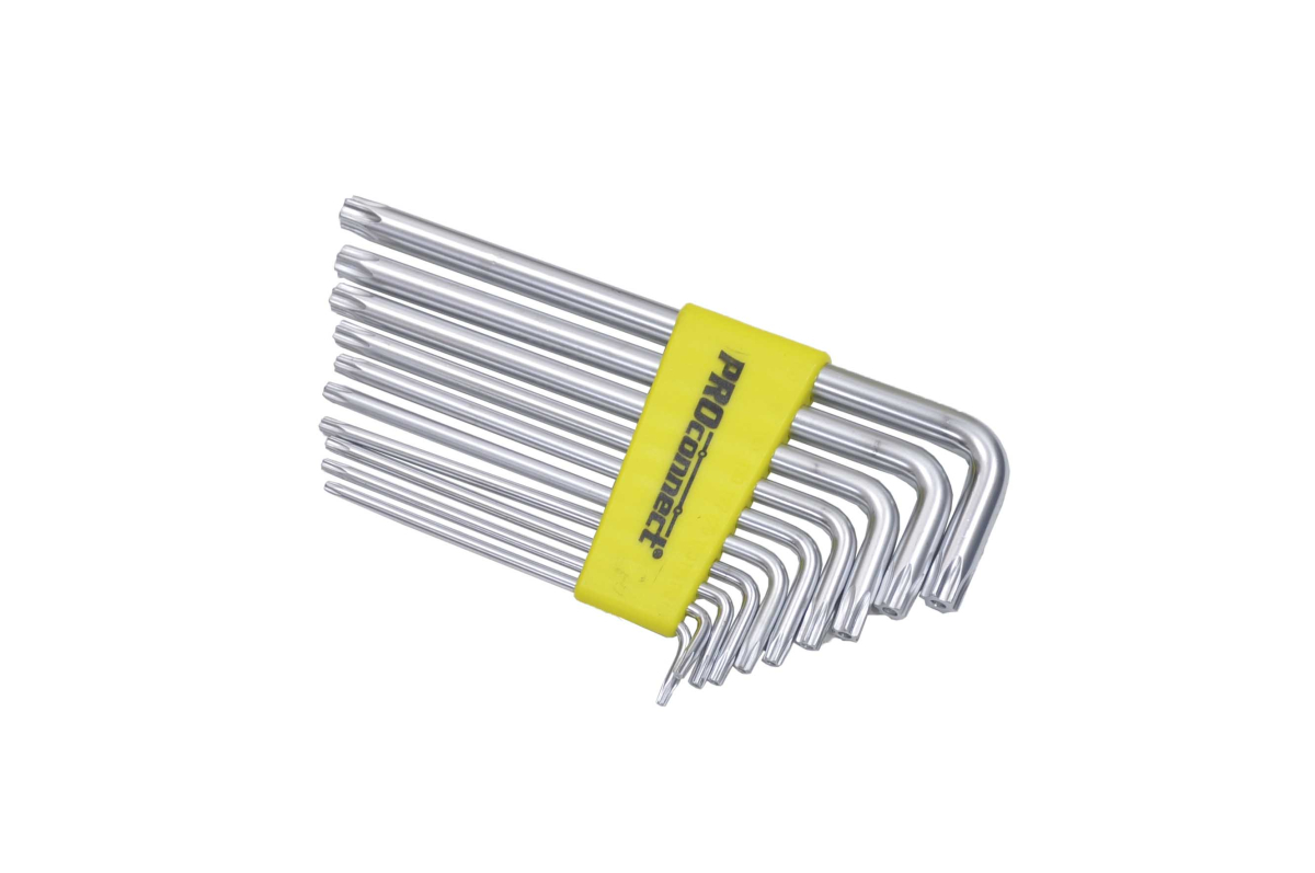 Набор шестигранников 10 предметов T9-T50 длинные TORX для работы с крепежными элементами с шестигранным шлицем. Их конструкция представляет собой небольшие металлические стержни Г-образной формы с поперечным сечением шестигранной формы. Широко используется при сборке мебели, ремонте автомобилей и других работах с крепежными элементами, расположенными в труднодоступных местах или ограниченном пространстве. В набор входят: T9, T10, T15,T20, T25, T27, T30, T40, T45, T50