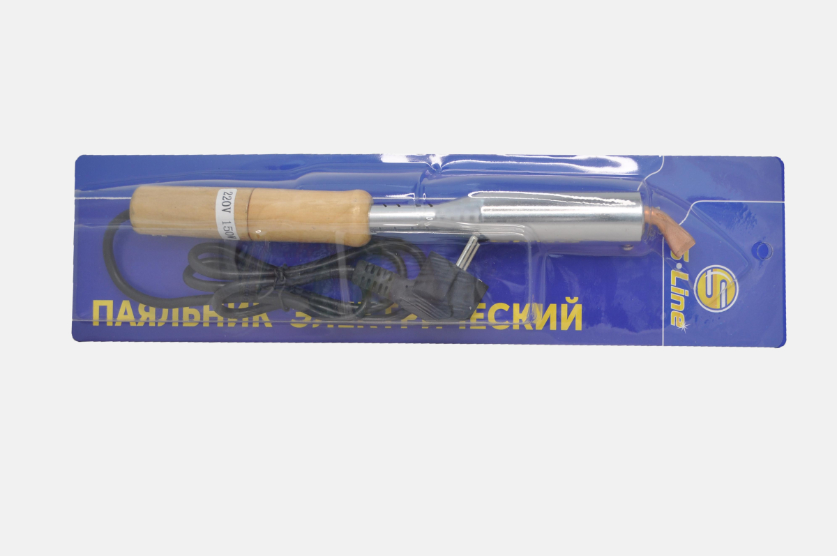 Мощный электрический паяльник с деревянной ручкой и медным жалом мощность 150 ватт 220 вольт