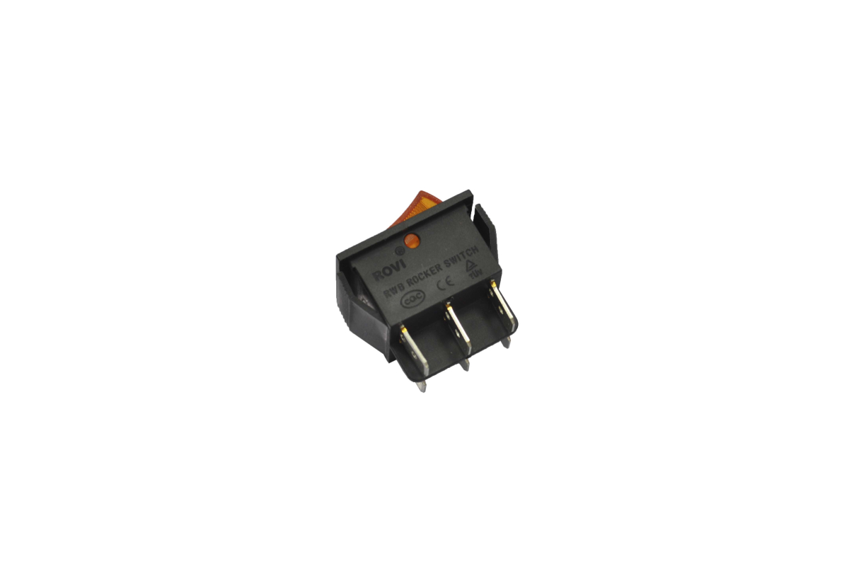 Выключатель клавишный 250V 15А (6с) ON-ON желтый с подсветкой для коммутации электрических цепей переменного тока напряжением до 250В. Монтаж осуществляется без применения винтов на плоских панелях толщиной от 0.8мм до 3мм. Подключение контактов осуществляется плоской клеммой 6.6мм, либо с помощью пайки. Основные характеристики: номинальное напряжение: 250В; предельное напряжение: 1500VАС не более 1 минуты; номинальный ток: 15A (250VAC); контактное сопротивление: не более 35 мОм; тип переключения: ON-ON;количество контактных групп: 2; количество контактов в контактной группе: 3; фиксация положений: да; индикатор коммутационных положений: желтый; рабочая температура: от -25℃ до +85℃; ресурс: 10 000 циклов.