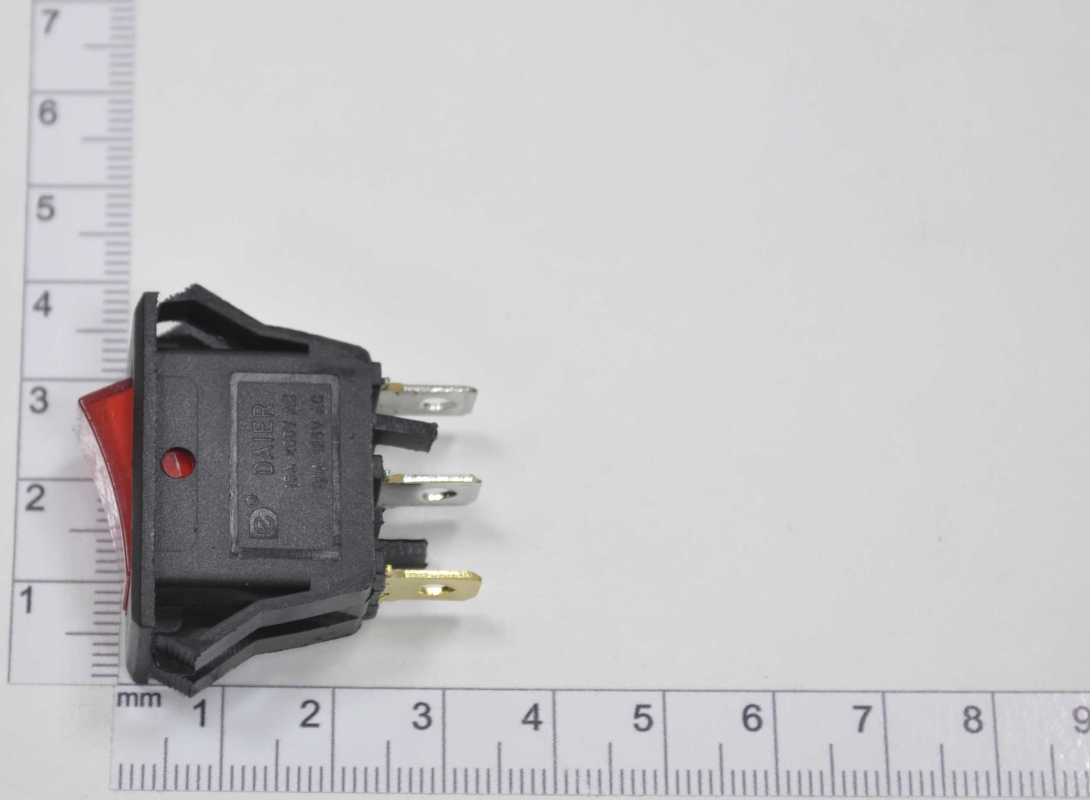 Выключатель клавишный 250V 15А (3с) ON-OFF красный с подсветкой (RWB-413, SC-788) для коммутации электрических цепей переменного тока напряжением до 250В. Клавишные (Рокерные) выключатели применяются в качестве комплектующих изделий различного электрооборудования (в сетевых фильтрах и удлинителях, аудио-оборудовании, блоках питания, электроустановках на различных производствах, автомобилях, и многих других местах). Имеет два положения. Монтаж осуществляется без применения винтов на плоских панелях толщиной от 0.8мм до 3мм. Подключение контактов осуществляется плоской клеммой 6.6мм, либо с помощью пайки. Основные характеристики: Номинальное напряжение: 250В; Предельное напряжение: 1500VАС не более 1 минуты; Номинальный ток: 15A (250VAC); Контактное сопротивление: не более 35 мОм; Тип переключения: ON-OFF; Количество контактных групп: 1; Количество контактов в контактной группе: 3; Фиксация положений: да; Индикатор коммутационных положений: красный; Рабочая температура: от -25℃ до +85℃; Ресурс: 10 000 циклов.