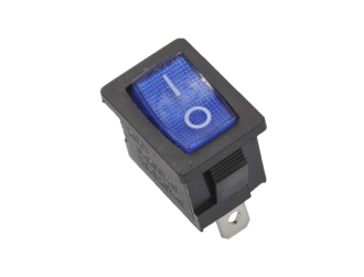 Выключатель клавишный 250V 6А (3с) ON-OFF синий с подсветкой Mini предназначен для коммутации электрических цепей переменного тока напряжением до 250В. Клавишные (Рокерные) выключатели применяются в качестве комплектующих изделий различного электрооборудования (в сетевых фильтрах и удлинителях, аудио-оборудовании, блоках питания, электроустановках на различных производствах, автомобилях, и многих других местах). Такой клавишный переключатель имеет два положения. Монтаж осуществляется без применения винтов на плоских панелях толщиной от 0.8мм до 3мм. Подключение контактов осуществляется плоской клеммой, либо с помощью пайки. Основные характеристики: Номинальное напряжение: 250В; Предельное напряжение: 1500VАС не более 1 минуты; Номинальный ток: 6A (250VAC); Контактное сопротивление: не более 35 мОм; Тип переключения: ON-OFF; Количество контактных групп: 1; Количество контактов в контактной группе: 3; Фиксация положений: да; Индикатор коммутационных положений: синий. Рабочая температура: от -25℃ до +85℃;Ресурс: 10 000 циклов.