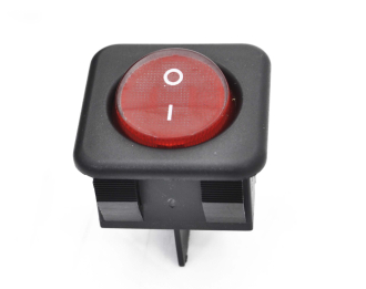 Переключатель RK1-05, без подсветки, 4 контакта (2on-off), цв. красный, круглая D-18 мм, корпус 30ммх30 мм ,установочный размер 22ммх25мм