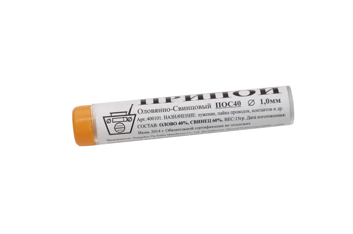 Припой 15 грамм 1.0 мм флюс (40%Sn,60%Pb) тюбик ПОС-40