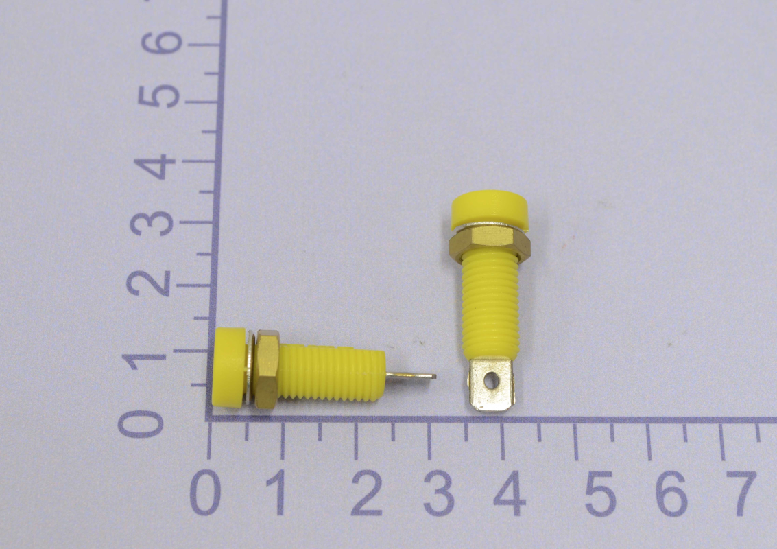 Разъем Banana ZP-032 (female) 4мм на кабель желтый пластик