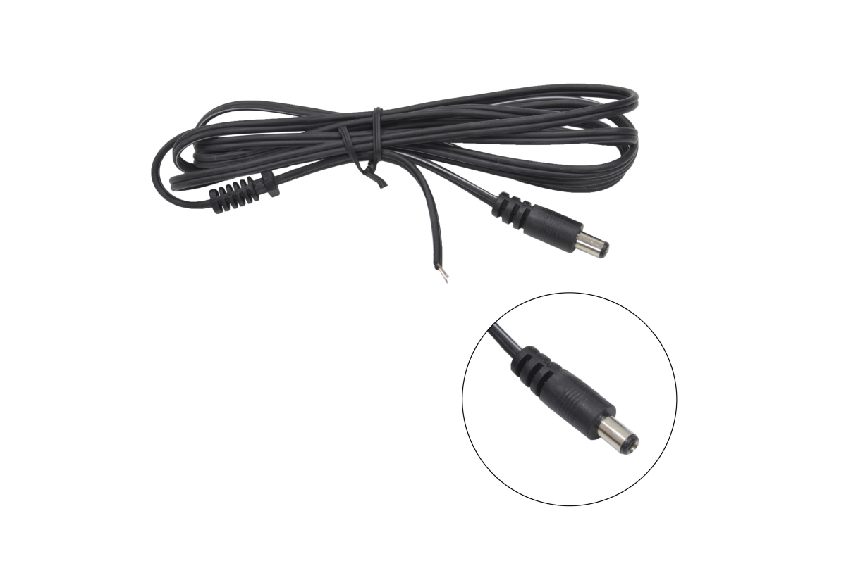 Шнур питания 20/0.10 с разъемом DC 5.5x2.5мм male (штекер), кабель 1,8 метра черный