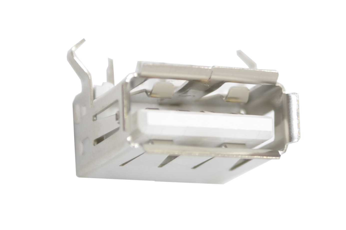 Разъем на плату, тип A угловой. Серия usb-a. Функциональное назначение розетка. Способ монтажа на плату. Форма контактов угловая. Количество контактов 4