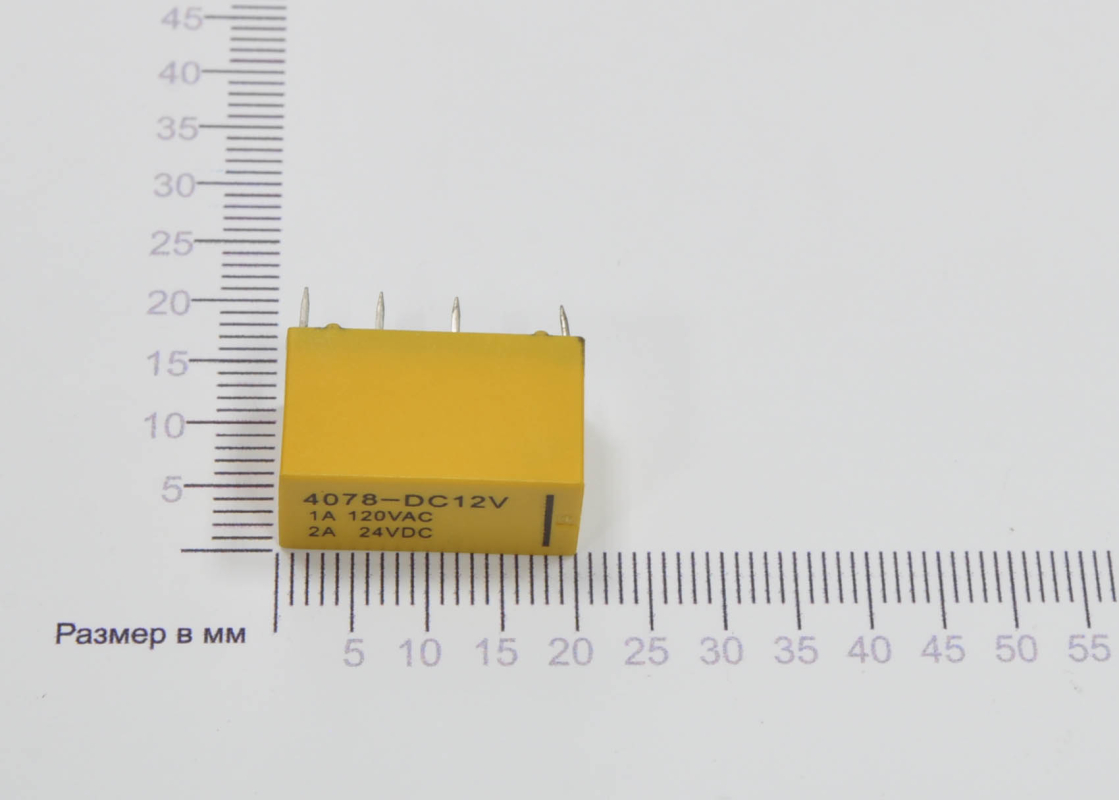 - Реле HLS-4078 Катушка 12V, две группы, 2А 20х12,2х9,9