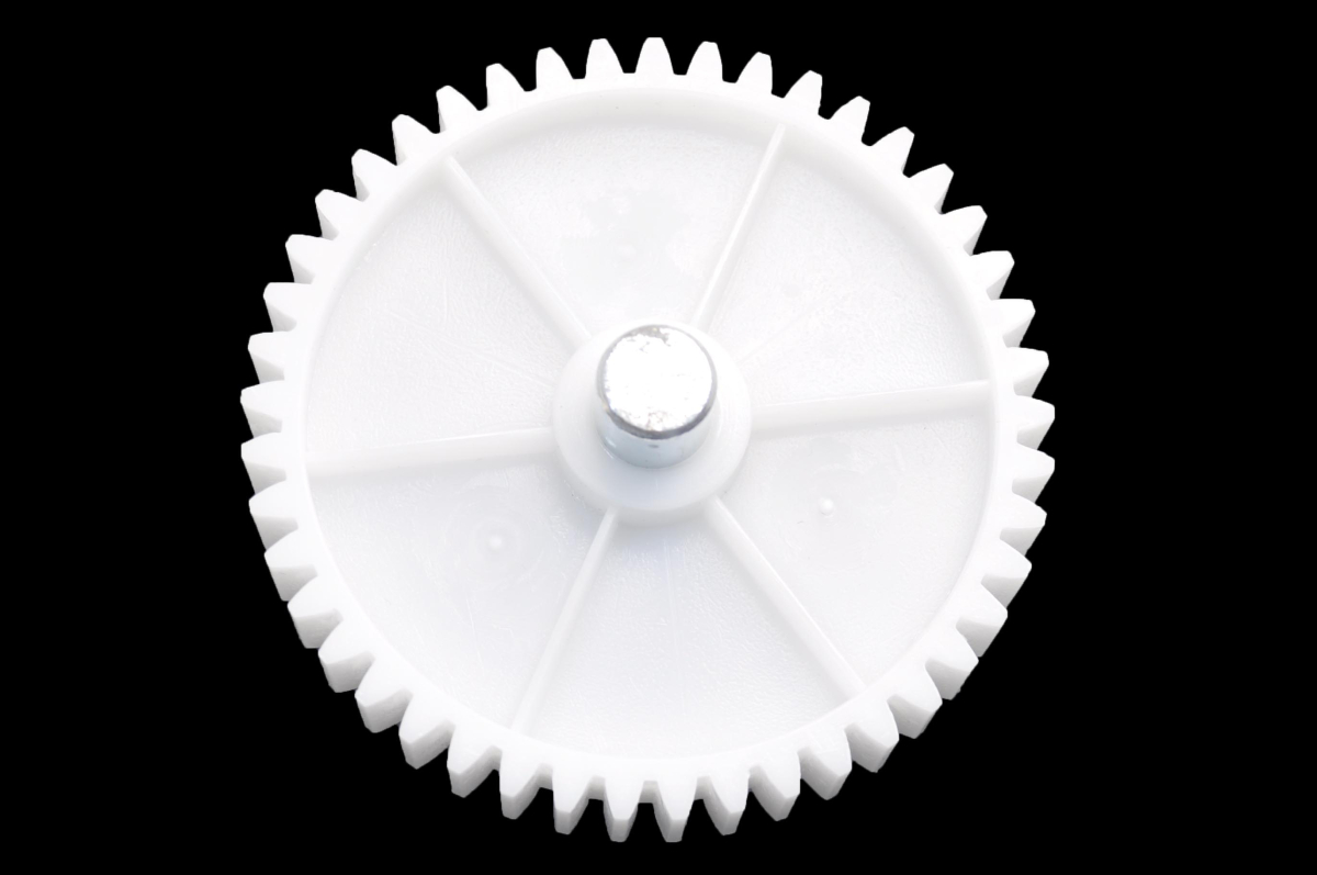 Шестерня большая для мясорубки Redmond RMG-1235 (вариант №3). Диаметр большой 81мм, высота 57 мм, диаметр метал. штока 12 мм, диаметр накручивающейся части 3,4мм, зуб прямой 45.