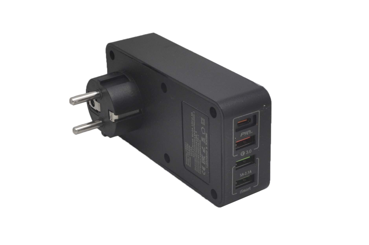 Сетевое адаптер. Номинальный ток, А 16. Напряжение, В 220. Количество постов 1 гнездо. Наличие вводного выключателя Нет. Цвет черный. Номинальное напряжение, В 220. Степень защиты IP20. 3 разъема USB + 1хType C, с заземлением