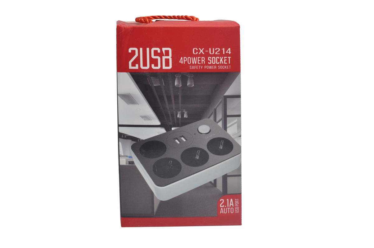 Фильтр сетевой CX-U214 - включает в себя 3 порта USB-A плюс 4 розетки под стандартные электрические вилки на 220 В. Пониженный нагрев, высокий уровень безопасности. Верхняя огнестойкость ПК и АБС. Технические характеристики: Номинальный ток: 10 А. Номинальное напряжение: 250 В. Номинальная мощность: 2500 Вт. USB-порт: 2 шт. Выход USB: 5 В, 2.1А (Auto Max). Материал корпуса: пластик АВС. Пожаробезопасный корпус: да. Количество розеток: 4. Материал корпуса: пластик. Длина шнура питания : 1.8 м