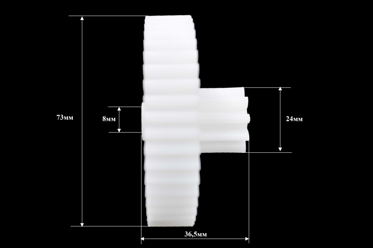 Шестерня мясорубки Redmond RMG 1201, зубцы 48/10 прямые, диам. большой - 73мм, высота 36.5, диам. малый - 24мм, внутр. 8мм