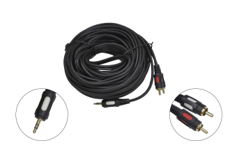 Шнур 3.5мм male (штекер) стерео - 2 x RCA male (штекер), позолоченный, D4.0x8.0мм, длина 10м
