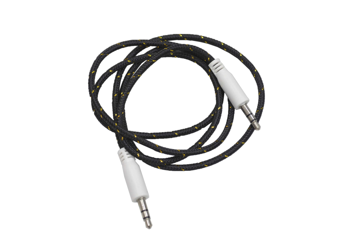 Кабель 3,5 штекер-штекер,1м черный в тканевой оплетке позволяет подключить ваш плеер или мобильный телефон к разъему AUX в автомагнитоле или в домашней аудиосистеме