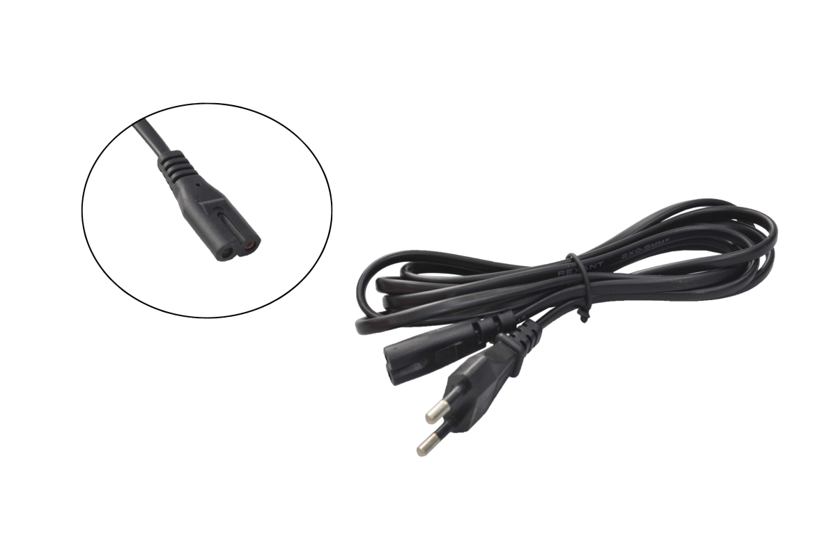 Шнур сетевой 1.8метра 2x0.5мм² для подключения к сети переменного тока (AC) с напряжением 220B аудио-, видеоаппаратуры, источников питания ноутбуков, игровых консолей и других приборов, имеющих штыревой сетевой разъем типа С8 (известен из-за его формы как "восьмёрка"). Характеристики:- тип вилки Евро;- тип розетки IEC (С7);- максимальная сила тока 2.5А;- изоляция жил и общая оболочка изготовлена из ПВХ; - длина провода 1.8 метра.