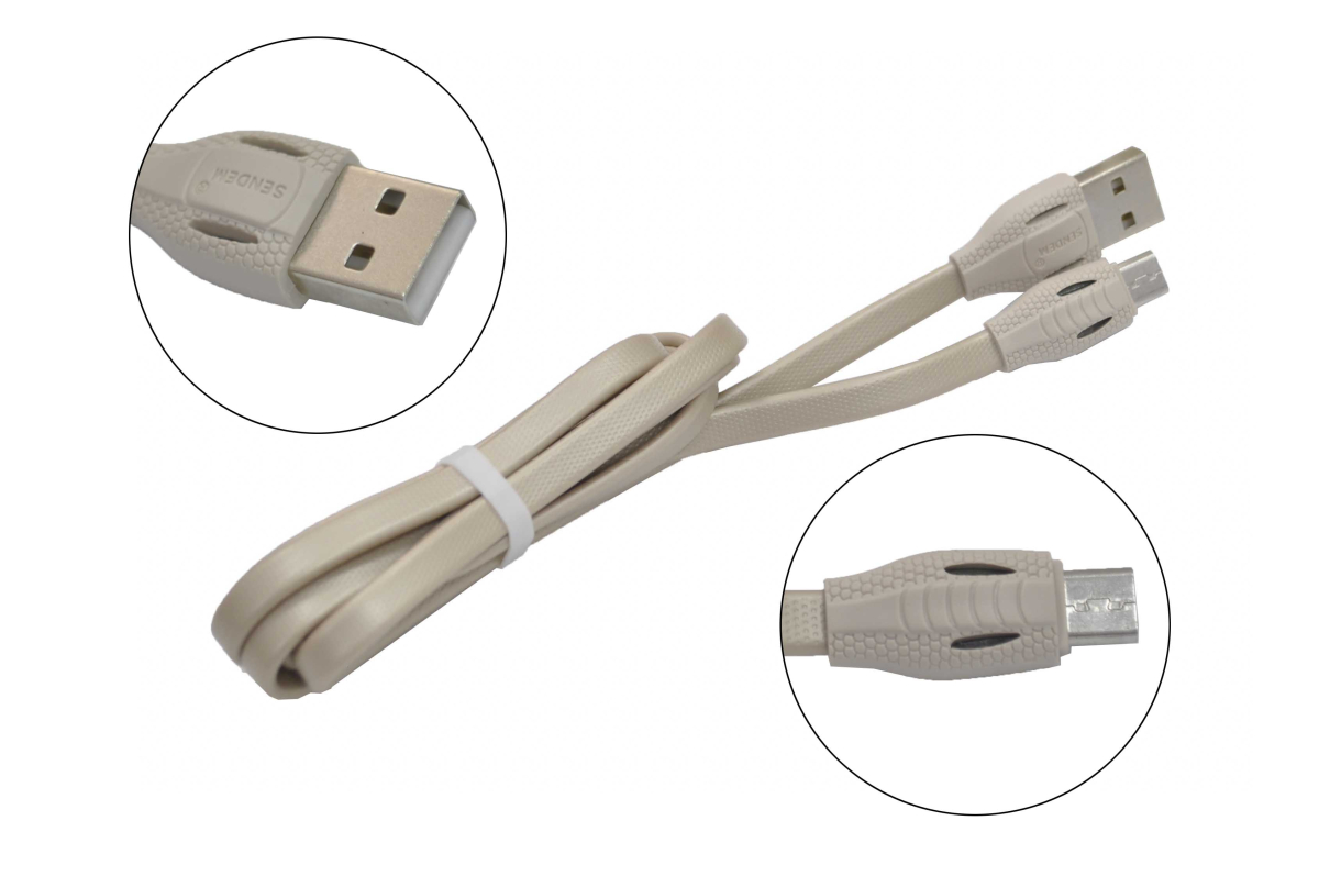 Шнур USB 2.0 AM > microB 1.0м плоский Sendem T1 (1.1A)