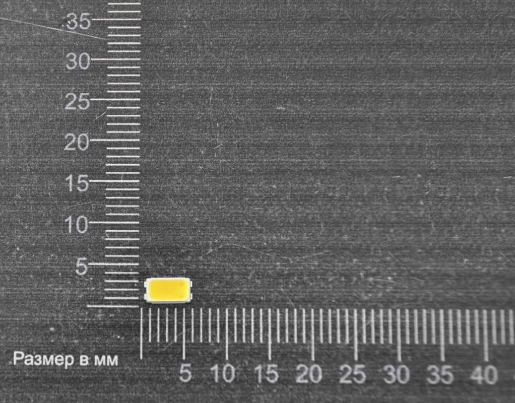 Осветительный светодиод. Тип диода LED. Монтаж SMD. Корпус 5630. Цвет диодa LED белый теплый. Цветовая температура 3000 (тип.)K. Обзор 124°. Цветовая температура 2780-3200К. Угол излучения 120град. Световой поток 40-45Лм. Ток (ном): 120мА. Напряжение падения (тип): 3,2В. Индекс цветопередачи 80. Размер 5.6×3.0×0.9 мм