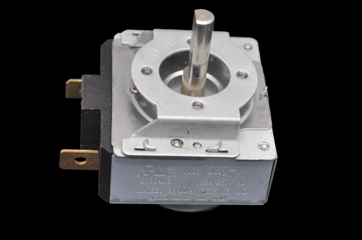 Таймер времени (электромеханический) для настольных электродуховок, микроволновок, аэрогрилей и другой бытовой техники. Время работы 1-120 мин. Максимальный рабочий ток 16A, при напряжении до 250 V. Оснащен звонком выключения. Универсальная запчасть. Крепится на 4 винта. Имеет 2 электрических контакта.