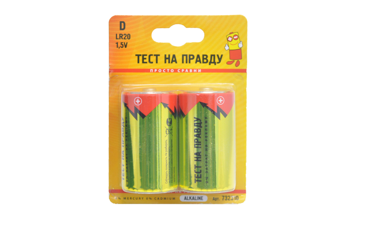 Элемент питания алкалиновый "Тест на правду". Типоразмер LR20, D. Напряжение питания 1.5В, 2 штуки в блистере