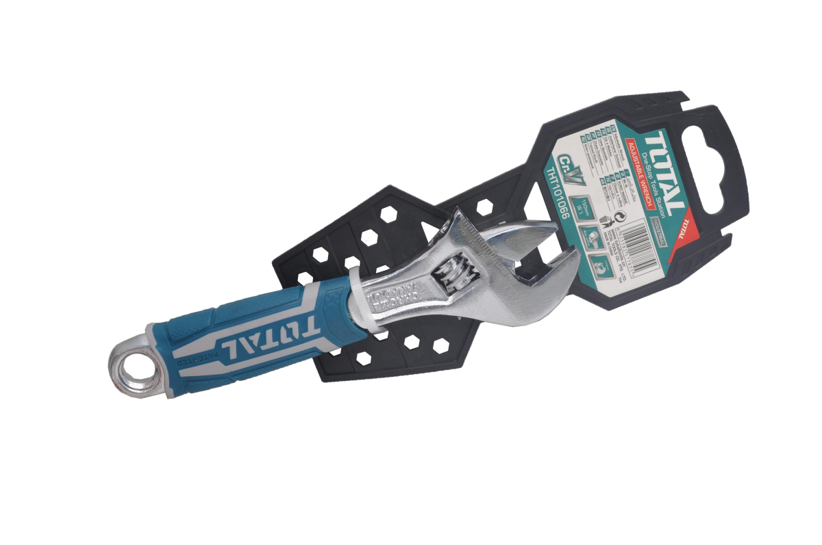 Разводной ключ TOTAL THT101066.Длина:150 мм. Трещотка:нет. Покрытие:нет. Материал:CrV. Max расстояние между губками:19.2 мм. Чехол на рукоятке:нет. Диэлектрическое покрытие:нет