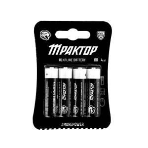 Элемент питания алкалиновый "Трактор". Типоразмер: LR06, AA, напряжение 1.5В, 4 штуки в блистере