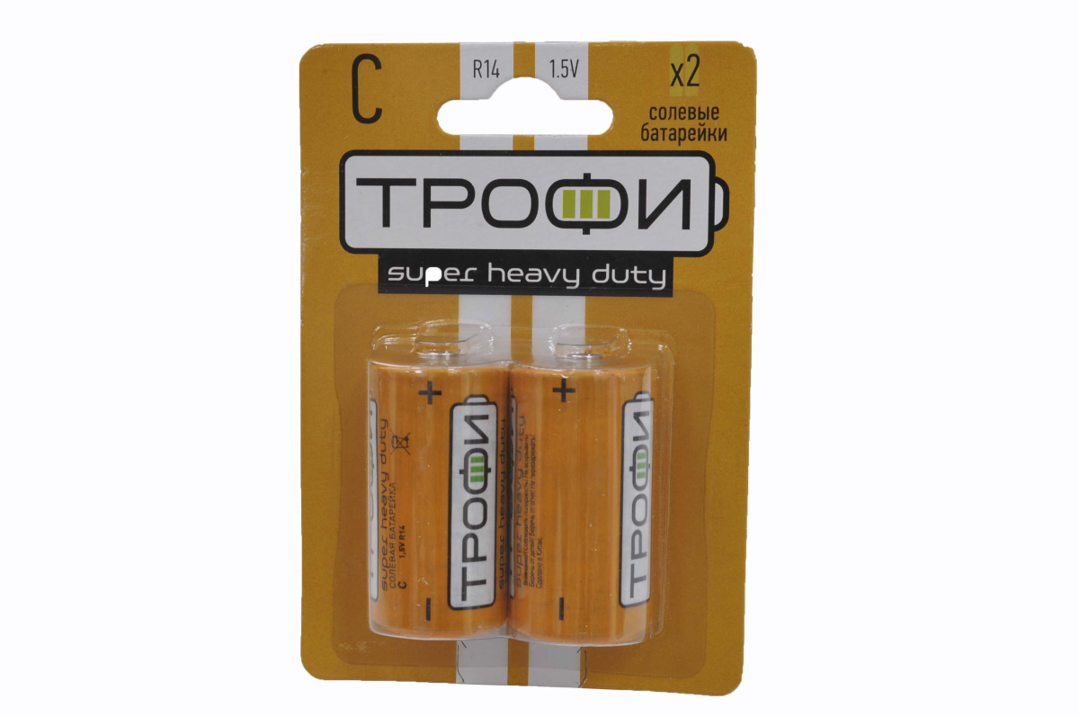 Элемент питания солевой Трофи (батарейка), типоразмер: R14, C, напряжение: 1,5В, 2 батарейки в блистере