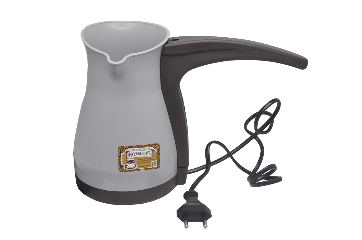Электрическая турка «Комфорт». Тип используемого кофе молотый. Мощность 200 Вт. Объем резервуара для воды 0.5 л. Дополнительные функции одновременное приготовление двух чашек. Тип управления механическое. Управление со смартфона нет