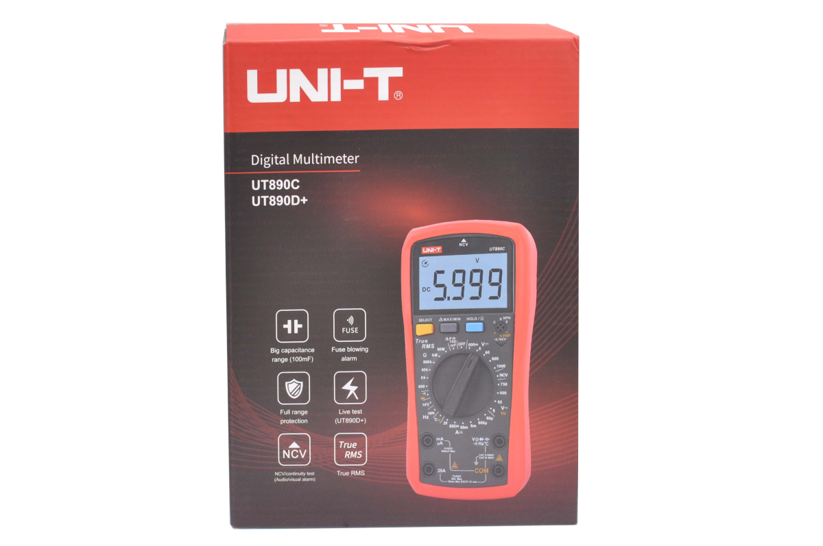 UT890C цифровой мультиметр. 6000-отсчетов true RMS, с большим ЖК-дисплеем. Максимальная измеряемая емкость составляет 100 МФ, с быстрым временем отклика менее 12 с. Измерения NCV и прозвон цепи со звуко-светодиодной индикацией. Кроме того, он оснащен защитой от высокого напряжения. Ручной диапазон автомат; NCV ; HFE ; Диодный тест ; Тест на непрерывность цепи; True RMS ; Аварийный предохранитель ; Звуко-световая Индикация (NCV/непрерывность); Память режима тока (AC/DC) ; Индикация перегрузки по току ≥ 20А ; Индикация низкого заряда батареи ≤ 2,5 V; DATA HOLD; Функция REL; Функция MAX/Min; Автоматическое отключение питания 15 мин ; Отключение подсветки дисплея 30s ; Рабочая температура 0 ℃ ~ 40 ℃ Безопасность 1000 В/ категория III 600 в