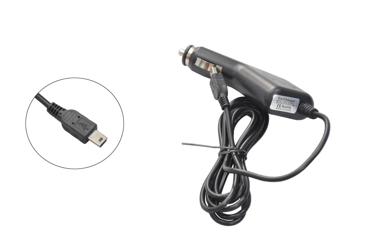 Зарядное устройство от прикуривателя автомобиля, mini-USB выход, выходное напряжение: 5 В, сила тока: 2 А,вход 12V, длина кабеля 1,5 метра