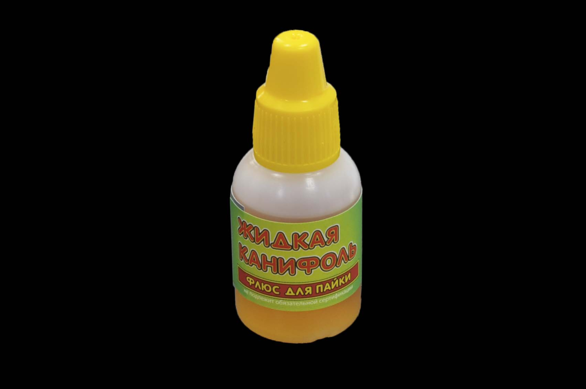 Жидкая канифоль - традиционный безопасный флюс для пайки. Другие название флюса: СКФ, ФКСп, ФКЭт, КЭ, Канифольный флюс. Удаление остатков можно производить с помощью спирта, растворителя а лучше специальным средством "Растворитель канифоли". Если нет специальных требований к чистоте поверхности, то удаление флюса после пайки не обязательно. Температурный интервал активности: от 180 до 350 С